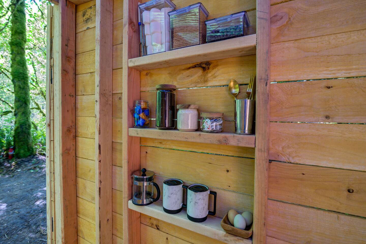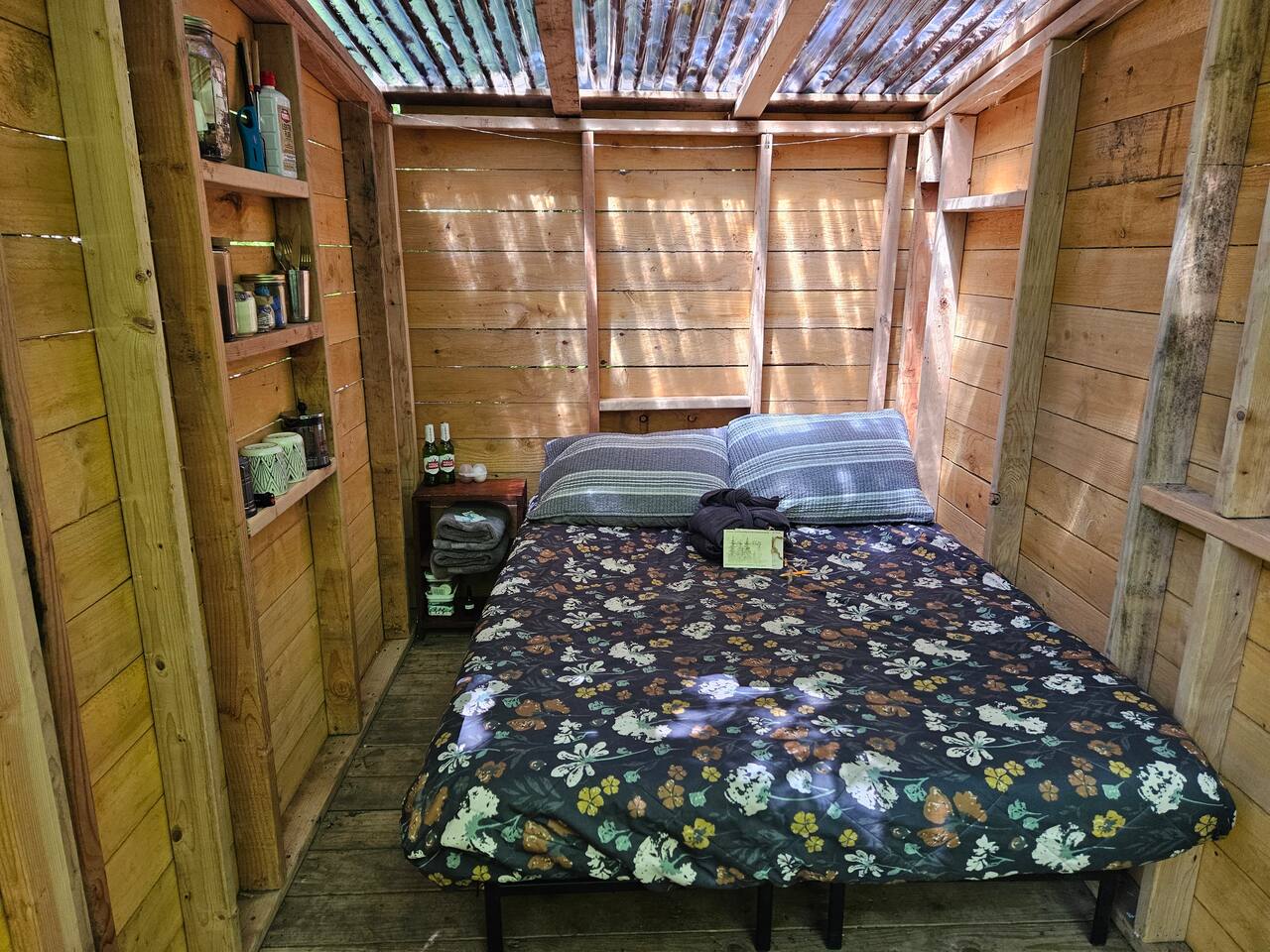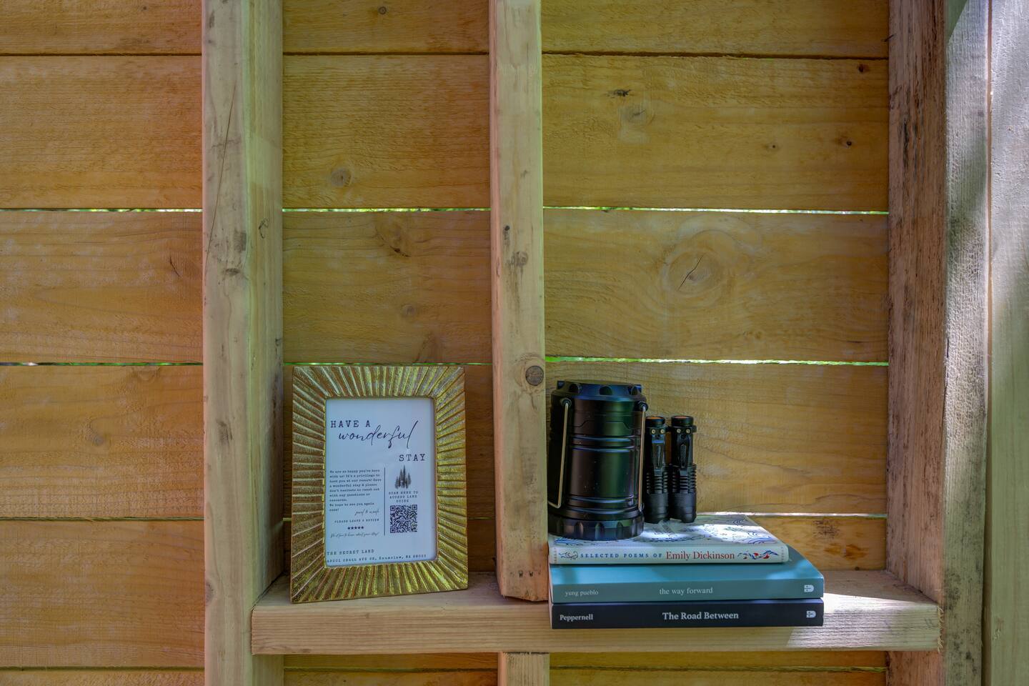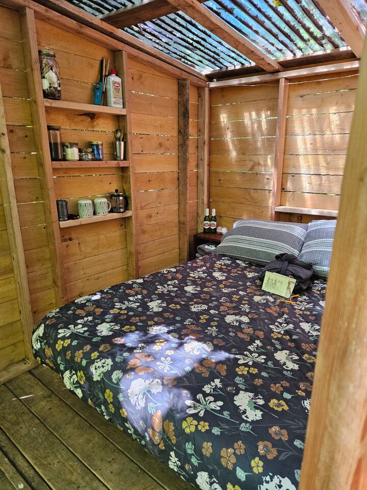 ⚡Download our Guidebook App ⚡ Table of Contents: → Read Before Booking → Our Story → About Mossy Limb Cabin → Land Amenities → Coming in 2025 🐓 READ BEFORE BOOKING 🐓 ⚡ NO SMOKING: Vaping is OK outdoors, however, cigarette or flame smoking is prohibited to protect our forest. If smoking occurs, we charge a $250 cabin cleaning fee plus $50 for any cigarette butt found onsite. If we have to walk miles of trails to pick up butts found you will be charged an additional $250 for a 30 acre cleaning sweep of our land and beaches. No flamed smoking on our land whatsoever. ⚡ DOGS: All dogs must be friendly, social, and non-reactive upon meeting other dogs and people on our land. We allow off-leashing, so your dog will interact with our dogs or other guests' dogs. You must inform us of your intention to bring a dog either during booking or via email upon booking. Our dog fee is $15 added upon booking. Please note a $200 fee applies for any unauthorized dogs not added to the reservation before checking in or brought to the farm without notice. If you arrive with an aggressive or reactive dog, your reservation will be canceled without a refund and the $200 unauthorized dog fee will apply. We prioritize the safety of our farm and guests. Living onsite, we'll notice any hidden or unauthorized dogs. Please help us maintain safety by adhering to our dog policy. For assistance adding your dog to the reservation, please send us a message at the time of booking, and we'll be happy to help. ⚡ 2 GUESTS MAX: We're couples focused and focus on stays with 2 guests only. This means we restrict overnight and day visitors. Please do not invite friends or family. Please inquire about larger sites. ⚡ NO DRIVE UP ACCESS: Our cabins do not have drive up access. You will need to park, load belongings in our wagons and walk 2-5 minutes to cabins. ⚡ NO WIFI OR ON GRID POWER: This is camping and a natural rustic cabin retreat. This isn't a hotel stay--it's a woodsy farm stay! ⚡MUST DOWNLOAD APP: Before booking please scan the QR code under the listing pictures. If you’ve already booked, a link is sent directly to you. 🐓OUR STORY: A LGBTQ Owned & Operating Farm 🐓 ⚡ The beginning… “Where are we going?!” Squealed my 8-year-old son from the back of the car with toys littered around his feet. As my 2 year old throws another toy on the floor suddenly he twists his head as he gets distracted; his eyes widen as they meet the massive trees filling the view of the windows. “I don’t know, I think we’re lost” my wife anxiously muttered as she white knuckles the wheel on the bumpy gravel drive. I popped my whole body around and exclaimed “We’re going somewhere no one knows about. A hidden place. The Secret Land!” That little car ride became an important day as we made our way nervously down the overgrown ½ mile driveway with keys in hand in December 2022. We decided shortly after moving onto the 30-acre riverfront property that we had to share it with others! Hello there! I'm Jewel. My wife and I are the owners of the farm we lovingly call The Secret Land. ⚡ From hoarded mess to lively farm… This property was a hidden gem for over 100 years and as the new caretakers of the land, it was up to us to make it come to life! We started with a massive clean-up of hoarded belongings left on one side of the property and a demolition process of outbuildings that month and hauled away tons of trash, cars, boats, buildings, and SO much more. On the riverfront side of the property hand cutting trails, limbing thousands of trees, and slowly, painstakingly in the February snow building an intentional space for guests to enjoy. We drove nails into reclaimed lumber, we shed blood with many injuries, and we doubted if it was possible. We made mistake after mistake and believed that if we just got up in the morning and did what was in front of us, we could welcome just one person to enjoy a still moment by the river, with campfire warming their boots, to sit and just be. ⚡ Starting Our Farm… We began agroforestry farming as we reclaimed our land. Our primary crops are wildflowers, native plants, mushrooms, and wild berries. We also produce fresh farm eggs with browns, blues, and green color–it’s our specialty. We sell our goods produced on the land in our farm stand. In 2025, we’ve planted over 200,000 wildflowers, thousands of mushrooms, and we’ll be starting our garden and greenhouse as we begin producing fresh herbs, vegetables, and medicinal plants. Our animals and our forest are our main agricultural producers and help us develop our land. Each animal on our farm has a role: 🦮 Dogs: Protect our land from bears, bobcats, and coyotes 🐔Chickens: Produce eggs, fertilize our beds, and keep our pests away 🦆 Ducks: Produce eggs, fertilize our beds, and keep our pond and water pests away 🐐Goats: Fertilize our fields, eat our trails, thin our abundant forest 🐖 Pigs: Eat our excess food waste, fertilize our fields, root our abundant forest Our animals are so important to us as they work hard for us and they are apart of our farm experience so please feel free to support our farm by coming by to feed them, socialize, and ask your farming questions! ⚡ Be our guest & grow with us… We welcomed our first guest in 2023 and the rest is history. We’ve welcomed guests of all ages and backgrounds with stories that have kept us motivated, allowed us to celebrate, evolve our approach, change our vision, and opened our hearts. All the questions, comments, and stories we’ve gotten from so many couples that ask us how to do what we’re doing. Those many conversations with young couples that want land, and space, and to share their passions but feel a little lost on how to start have really been a driving force. All these guests have held a large space within our hearts and kept us going. All that’s missing is you! We’re looking forward to entering the next chapter of o