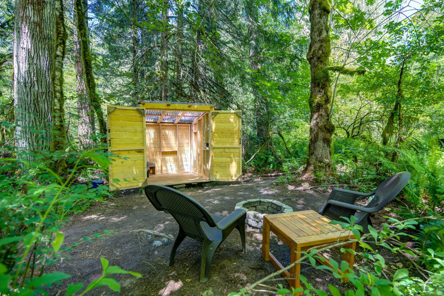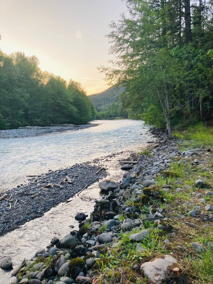🌲 Our tiniest forest cabin — cozy, private, and welcoming Fall & Winter stays (heat included) ❄️ 🏔️ Located 25–45 min from Mount Rainier gates ⭐ 1,000+ five-star reviews across our farm—book with confidence 🦉 Perfect for solo travelers, couples, or friends 🔥 Firepit • 🍫 S’mores & ☕ coffee bar 💦 Bubbly hot tub • 🍳 Outdoor kitchen 🐕 Dog-friendly trails 🌈 LGBTQ-owned • Includes 2 guests