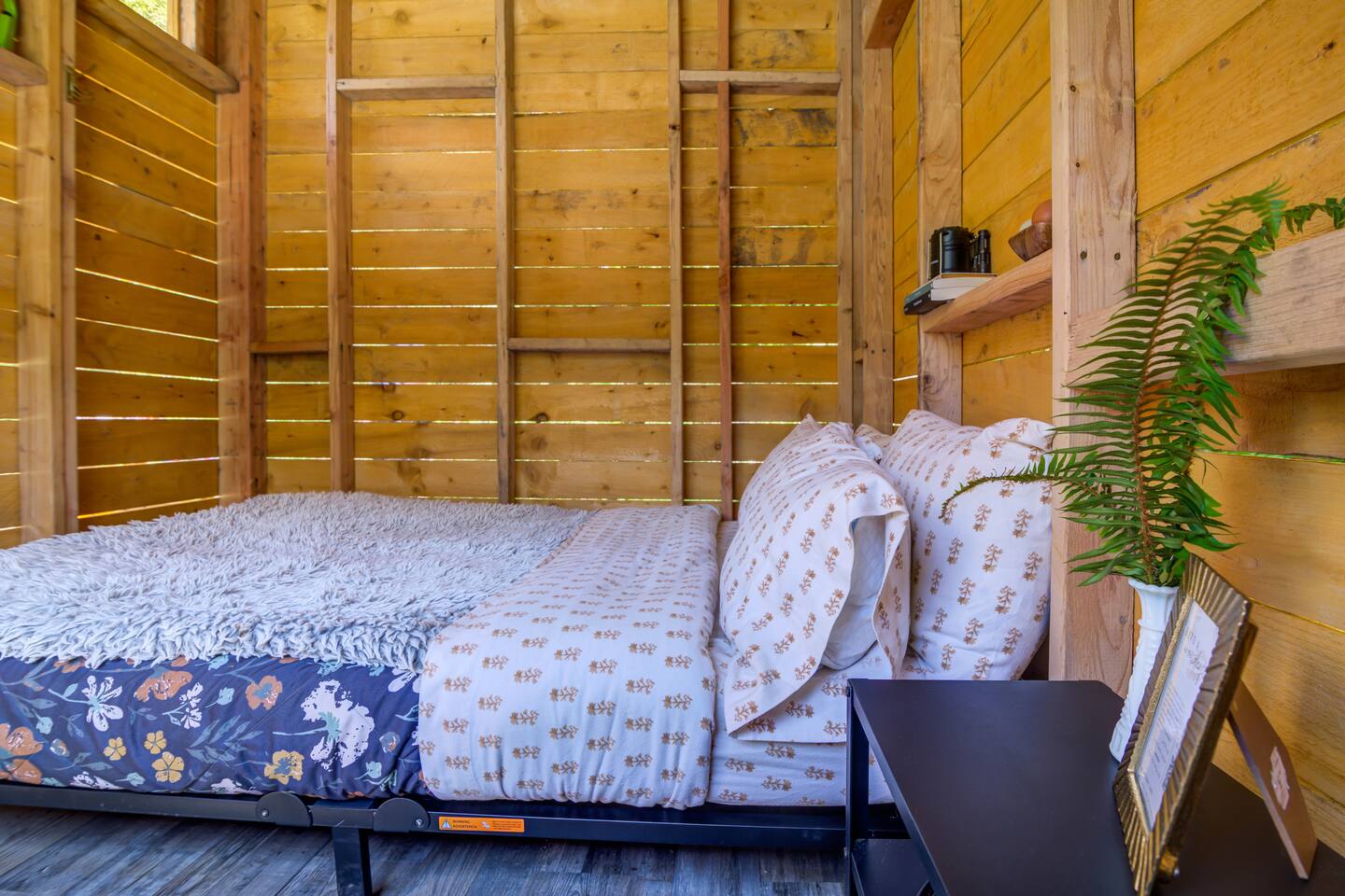 ⚡Download our Guidebook App ⚡ Table of Contents: → Read Before Booking → Our Story → About Snapped Twig Cabin → Land Amenities → Coming in 2025 🐓 READ BEFORE BOOKING 🐓 ⚡ NO SMOKING: Vaping is OK outdoors, however, cigarette or flame smoking is prohibited to protect our forest. We charge a $250 cabin cleaning fee plus $50 for any cigarette butt found onsite. If we have to walk miles of trails to pick up butts found you will be charged an additional $250 for a 30 acre cleaning sweep of our land and beaches. No flamed smoking on our land whatsoever. ⚡ DOGS: All dogs must be friendly, social, and non-reactive upon meeting other dogs and people on our land. We allow off-leashing, so your dog will interact with our dogs or other guests' dogs. You must inform us of your intention to bring a dog either during booking or via email upon booking. Our dog fee is $15 added upon booking. Please note a $200 fee applies for any unauthorized dogs not added to the reservation before checking in or brought to the farm without notice. If you arrive with an aggressive or reactive dog, your reservation will be canceled without a refund and the $200 unauthorized dog fee will apply. We prioritize the safety of our farm and guests. Living onsite, we'll notice any hidden or unauthorized dogs. Please help us maintain safety by adhering to our dog policy. For assistance adding your dog to the reservation, please send us a message at the time of booking, and we'll be happy to help. ⚡ 2 GUESTS MAX: We're couples focused and focus on stays with 2 guests only. This means we restrict overnight and day visitors. Please do not invite friends or family. Please inquire about larger sites. ⚡ NO DRIVE UP ACCESS: Our cabins do not have drive up access. You will need to park, load belongings in our wagons and walk 2-5 minutes to cabins. ⚡ NO WIFI OR ON GRID POWER: This is camping and a natural rustic cabin retreat. This isn't a hotel stay--it's a woodsy farm stay! ⚡MUST DOWNLOAD APP: Before booking please scan the QR code under the listing pictures. If you’ve already booked, a link is sent directly to you. 🐓OUR STORY: A LGBTQ Owned & Operating Farm 🐓 ⚡ The beginning… “Where are we going?!” Squealed my 8-year-old son from the back of the car with toys littered around his feet. As my 2 year old throws another toy on the floor suddenly he twists his head as he gets distracted; his eyes widen as they meet the massive trees filling the view of the windows. “I don’t know, I think we’re lost” my wife anxiously muttered as she white knuckles the wheel on the bumpy gravel drive. I popped my whole body around and exclaimed “We’re going somewhere no one knows about. A hidden place. The Secret Land!” That little car ride became an important day as we made our way nervously down the overgrown ½ mile driveway with keys in hand in December 2022. We decided shortly after moving onto the 30-acre riverfront property that we had to share it with others! Hello there! I'm Jewel. My wife and I are the owners of the farm we lovingly call The Secret Land. ⚡ From hoarded mess to lively farm… This property was a hidden gem for over 100 years and as the new caretakers of the land, it was up to us to make it come to life! We started with a massive clean-up of hoarded belongings left on one side of the property and a demolition process of outbuildings that month and hauled away tons of trash, cars, boats, buildings, and SO much more. On the riverfront side of the property hand cutting trails, limbing thousands of trees, and slowly, painstakingly in the February snow building an intentional space for guests to enjoy. We drove nails into reclaimed lumber, we shed blood with many injuries, and we doubted if it was possible. We made mistake after mistake and believed that if we just got up in the morning and did what was in front of us, we could welcome just one person to enjoy a still moment by the river, with campfire warming their boots, to sit and just be. ⚡ Starting Our Farm… We began agroforestry farming as we reclaimed our land. Our primary crops are wildflowers, native plants, mushrooms, and wild berries. We also produce fresh farm eggs with browns, blues, and green color–it’s our specialty. We sell our goods produced on the land in our farm stand. In 2025, we’ve planted over 200,000 wildflowers, thousands of mushrooms, and we’ll be starting our garden and greenhouse as we begin producing fresh herbs, vegetables, and medicinal plants. Our animals and our forest are our main agricultural producers and help us develop our land. Each animal on our farm has a role: 🦮 Dogs: Protect our land from bears, bobcats, and coyotes 🐔Chickens: Produce eggs, fertilize our beds, and keep our pests away 🦆 Ducks: Produce eggs, fertilize our beds, and keep our pond and water pests away 🐐Goats: Fertilize our fields, eat our trails, thin our abundant forest 🐖 Pigs: Eat our excess food waste, fertilize our fields, root our abundant forest Our animals are so important to us as they work hard for us and they are apart of our farm experience so please feel free to support our farm by coming by to feed them, socialize, and ask your farming questions! ⚡ Be our guest & grow with us… We welcomed our first guest in 2023 and the rest is history. We’ve welcomed guests of all ages and backgrounds with stories that have kept us motivated, allowed us to celebrate, evolve our approach, change our vision, and opened our hearts. All the questions, comments, and stories we’ve gotten from so many couples that ask us how to do what we’re doing. Those many conversations with young couples that want land, and space, and to share their passions but feel a little lost on how to start have really been a driving force. All these guests have held a large space within our hearts and kept us going. All that’s missing is you! We’re looking forward to entering the next chapter of our little woodsy 