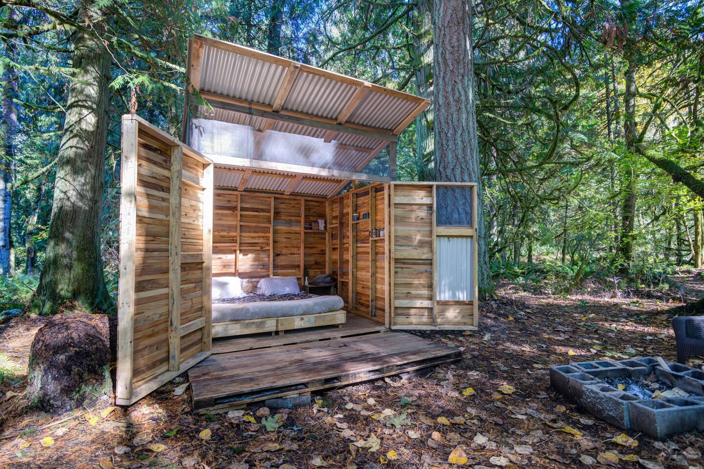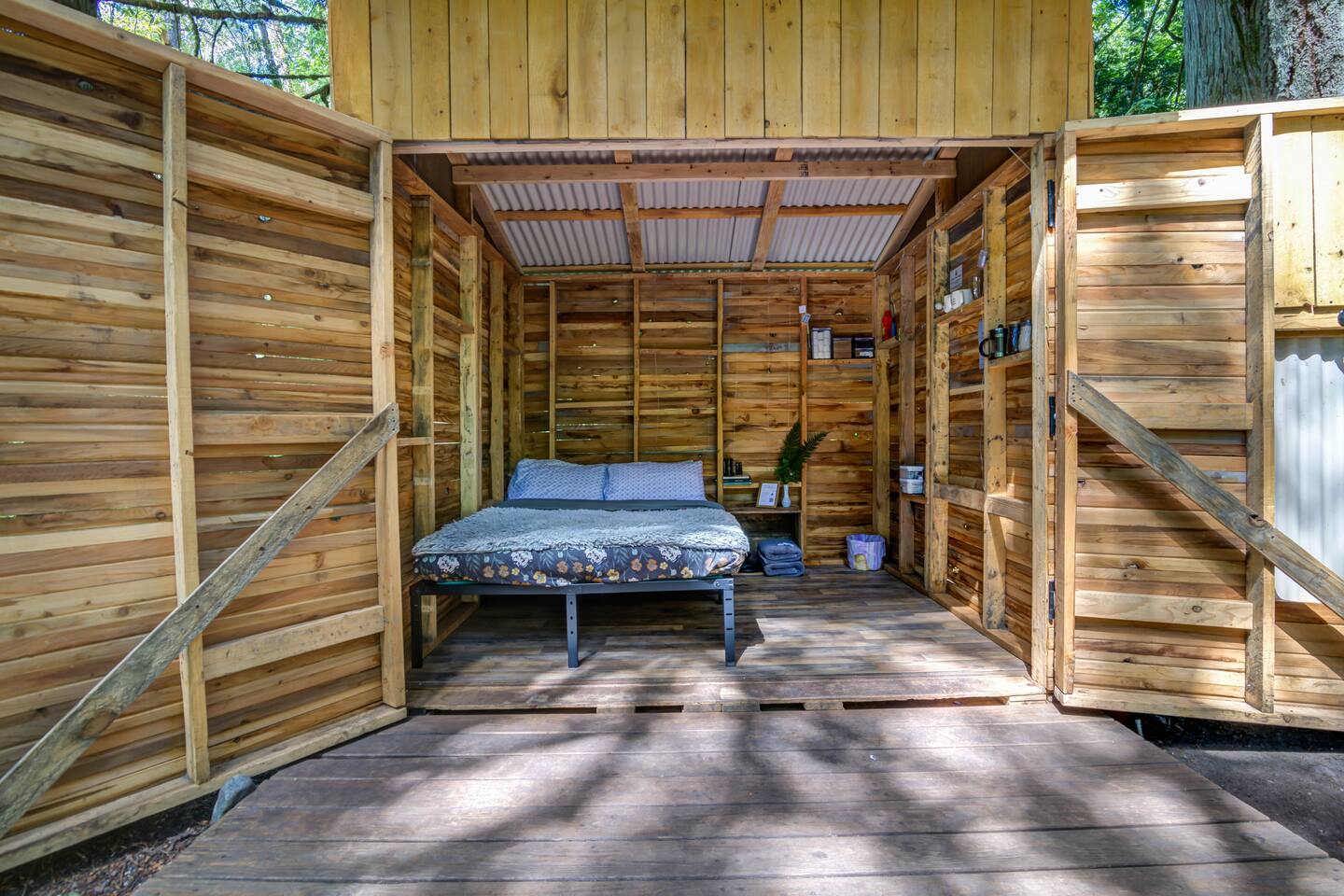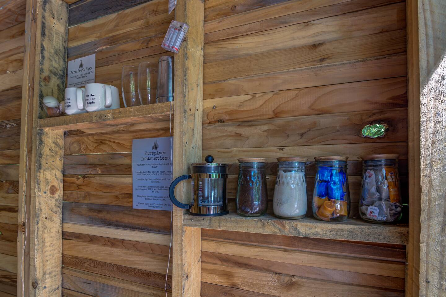⚡Download our Guidebook App ⚡ Table of Contents: → Read Before Booking → Our Story → About Bitten Pinecone Cabin → Land Amenities → Coming in 2025 🐓 READ BEFORE BOOKING 🐓 ⚡ NO SMOKING: Vaping is OK outdoors, however, cigarette or flame smoking is prohibited to protect our forest. We charge a $250 cabin cleaning fee plus $50 for any cigarette butt found onsite. If we have to walk miles of trails to pick up butts found you will be charged an additional $250 for a 30 acre cleaning sweep of our land and beaches. No flamed smoking on our land whatsoever. ⚡ DOGS: All dogs must be friendly, social, and non-reactive upon meeting other dogs and people on our land. We allow off-leashing, so your dog will interact with our dogs or other guests' dogs. You must inform us of your intention to bring a dog either during booking or via email upon booking. Our dog fee is $15 added upon booking. Please note a $200 fee applies for any unauthorized dogs not added to the reservation before checking in or brought to the farm without notice. If you arrive with an aggressive or reactive dog, your reservation will be canceled without a refund and the $200 unauthorized dog fee will apply. We prioritize the safety of our farm and guests. Living onsite, we'll notice any hidden or unauthorized dogs. Please help us maintain safety by adhering to our dog policy. For assistance adding your dog to the reservation, please send us a message at the time of booking, and we'll be happy to help. ⚡ 2 GUESTS MAX: We're couples focused and focus on stays with 2 guests only. This means we restrict overnight and day visitors. Please do not invite friends or family. Please inquire about larger sites. ⚡ NO DRIVE UP ACCESS: Our cabins do not have drive up access. You will need to park, load belongings in our wagons and walk 2-5 minutes to cabins. ⚡ NO WIFI OR ON GRID POWER: This is camping and a natural rustic cabin retreat. This isn't a hotel stay--it's a woodsy farm stay! ⚡MUST DOWNLOAD APP: Before booking please scan the QR code under the listing pictures. If you’ve already booked, a link is sent directly to you. 🐓OUR STORY: A LGBTQ Owned & Operating Farm 🐓 ⚡ The beginning… “Where are we going?!” Squealed my 8-year-old son from the back of the car with toys littered around his feet. As my 2 year old throws another toy on the floor suddenly he twists his head as he gets distracted; his eyes widen as they meet the massive trees filling the view of the windows. “I don’t know, I think we’re lost” my wife anxiously muttered as she white knuckles the wheel on the bumpy gravel drive. I popped my whole body around and exclaimed “We’re going somewhere no one knows about. A hidden place. The Secret Land!” That little car ride became an important day as we made our way nervously down the overgrown ½ mile driveway with keys in hand in December 2022. We decided shortly after moving onto the 30-acre riverfront property that we had to share it with others! Hello there! I'm Jewel. My wife and I are the owners of the farm we lovingly call The Secret Land. ⚡ From hoarded mess to lively farm… This property was a hidden gem for over 100 years and as the new caretakers of the land, it was up to us to make it come to life! We started with a massive clean-up of hoarded belongings left on one side of the property and a demolition process of outbuildings that month and hauled away tons of trash, cars, boats, buildings, and SO much more. On the riverfront side of the property hand cutting trails, limbing thousands of trees, and slowly, painstakingly in the February snow building an intentional space for guests to enjoy. We drove nails into reclaimed lumber, we shed blood with many injuries, and we doubted if it was possible. We made mistake after mistake and believed that if we just got up in the morning and did what was in front of us, we could welcome just one person to enjoy a still moment by the river, with campfire warming their boots, to sit and just be. ⚡ Starting Our Farm… We began agroforestry farming as we reclaimed our land. Our primary crops are wildflowers, native plants, mushrooms, and wild berries. We also produce fresh farm eggs with browns, blues, and green color–it’s our specialty. We sell our goods produced on the land in our farm stand. In 2025, we’ve planted over 200,000 wildflowers, thousands of mushrooms, and we’ll be starting our garden and greenhouse as we begin producing fresh herbs, vegetables, and medicinal plants. Our animals and our forest are our main agricultural producers and help us develop our land. Each animal on our farm has a role: 🦮 Dogs: Protect our land from bears, bobcats, and coyotes 🐔Chickens: Produce eggs, fertilize our beds, and keep our pests away 🦆 Ducks: Produce eggs, fertilize our beds, and keep our pond and water pests away 🐐Goats: Fertilize our fields, eat our trails, thin our abundant forest 🐖 Pigs: Eat our excess food waste, fertilize our fields, root our abundant forest Our animals are so important to us as they work hard for us and they are apart of our farm experience so please feel free to support our farm by coming by to feed them, socialize, and ask your farming questions! ⚡ Be our guest & grow with us… We welcomed our first guest in 2023 and the rest is history. We’ve welcomed guests of all ages and backgrounds with stories that have kept us motivated, allowed us to celebrate, evolve our approach, change our vision, and opened our hearts. All the questions, comments, and stories we’ve gotten from so many couples that ask us how to do what we’re doing. Those many conversations with young couples that want land, and space, and to share their passions but feel a little lost on how to start have really been a driving force. All these guests have held a large space within our hearts and kept us going. All that’s missing is you! We’re looking forward to entering the next chapter of our little wood